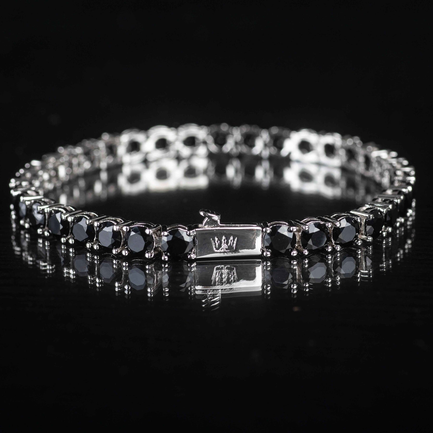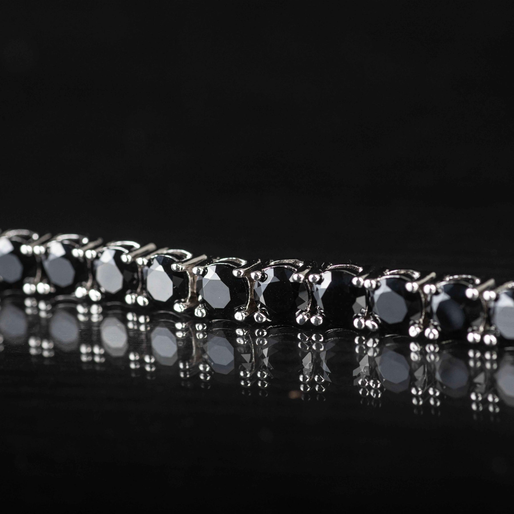 Con una brillante fila di cristalli neri impeccabilmente tagliati, questo bracciale tennis aggiunge una scintilla di stile al tuo polso. Aggiungi un tocco di classe al tuo look.