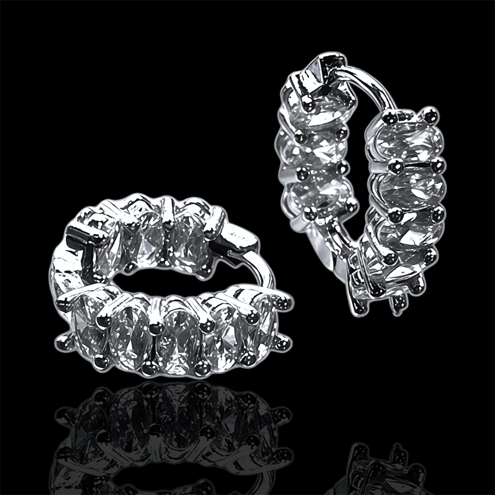 Orecchini tennis eleganti e brillanti. Presentano una fila di cristalli scintillanti sia all'interno che all'esterno, creando un effetto luminoso a 360 gradi. Perfetti per ogni occasione dal quotidiano agli eventi speciali. Un accessorio raffinato che unisce stile e qualità.