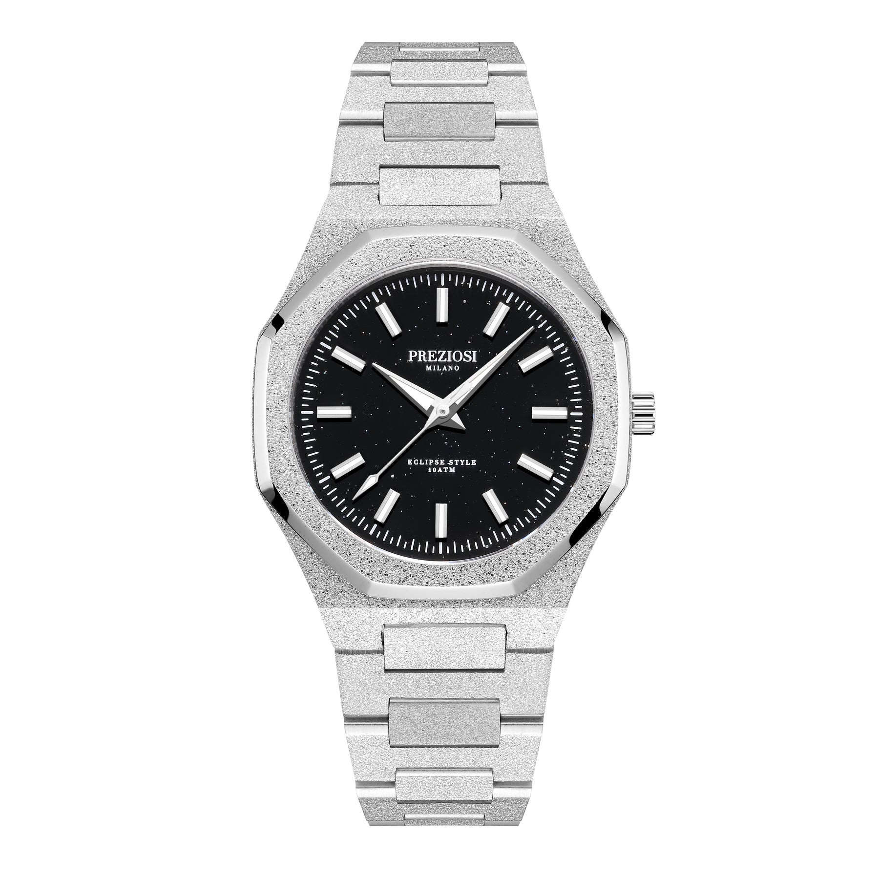OROLOGIO PREZIOSI MILANO ECLIPSE SILVER BLACK STARS 34mm