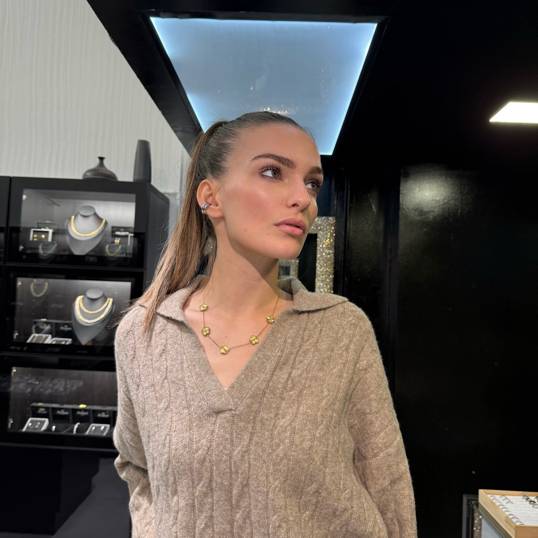 La Collana Golden Flower è il gioiello ideale per chi ama uno stile delicato ma ricercato. Composta da cinque raffinati fiori oro, questa collana illumina il décolleté con un tocco di eleganza naturale e femminile.