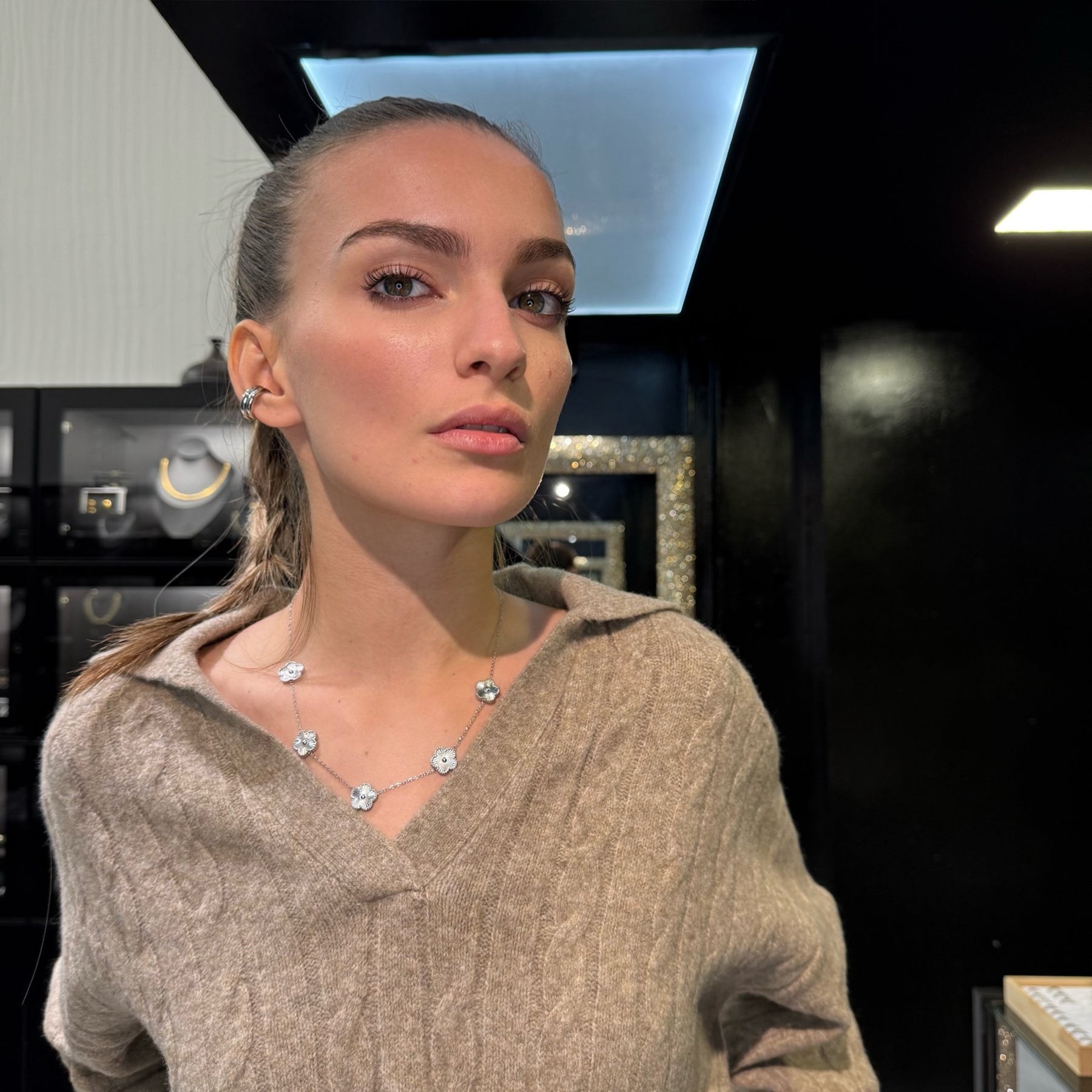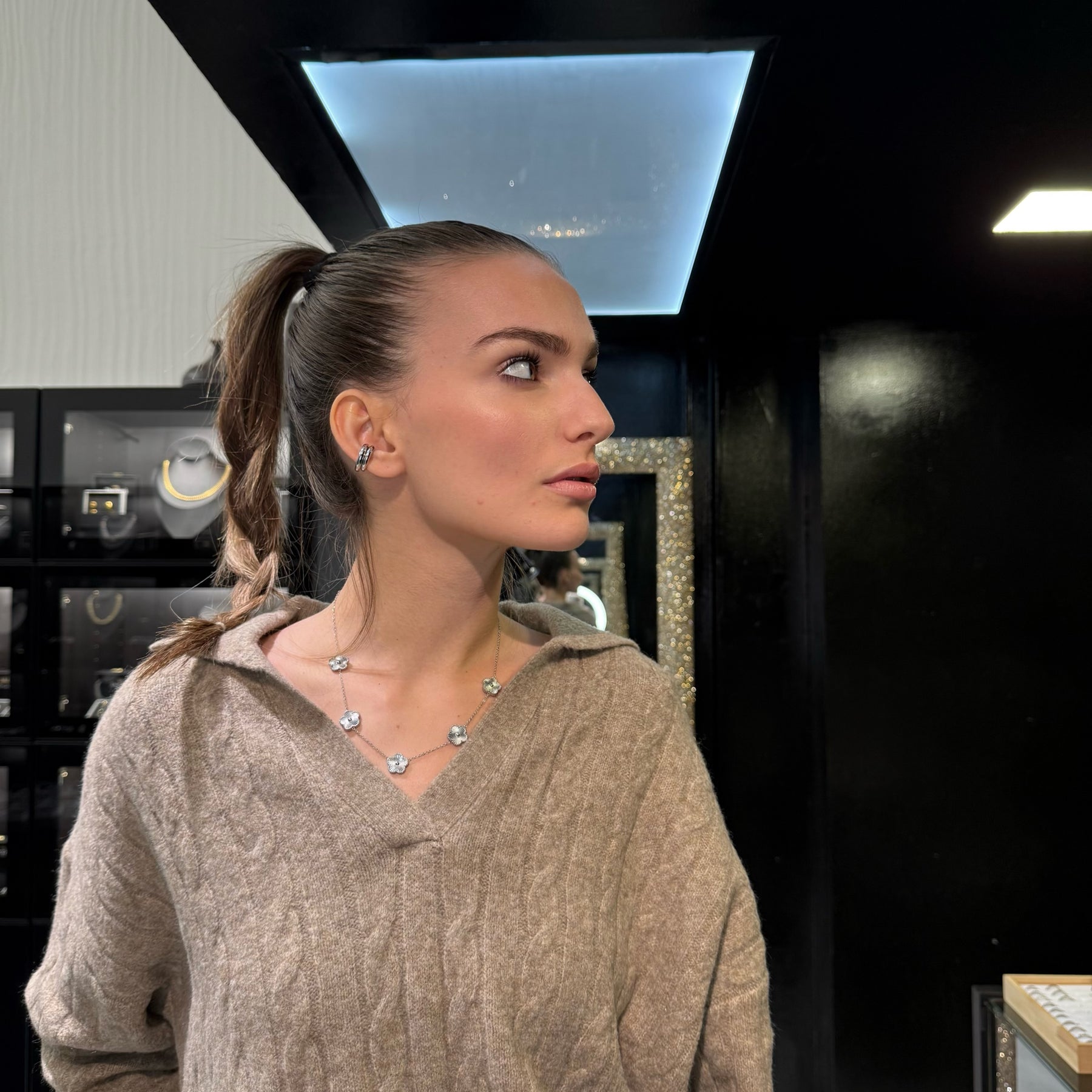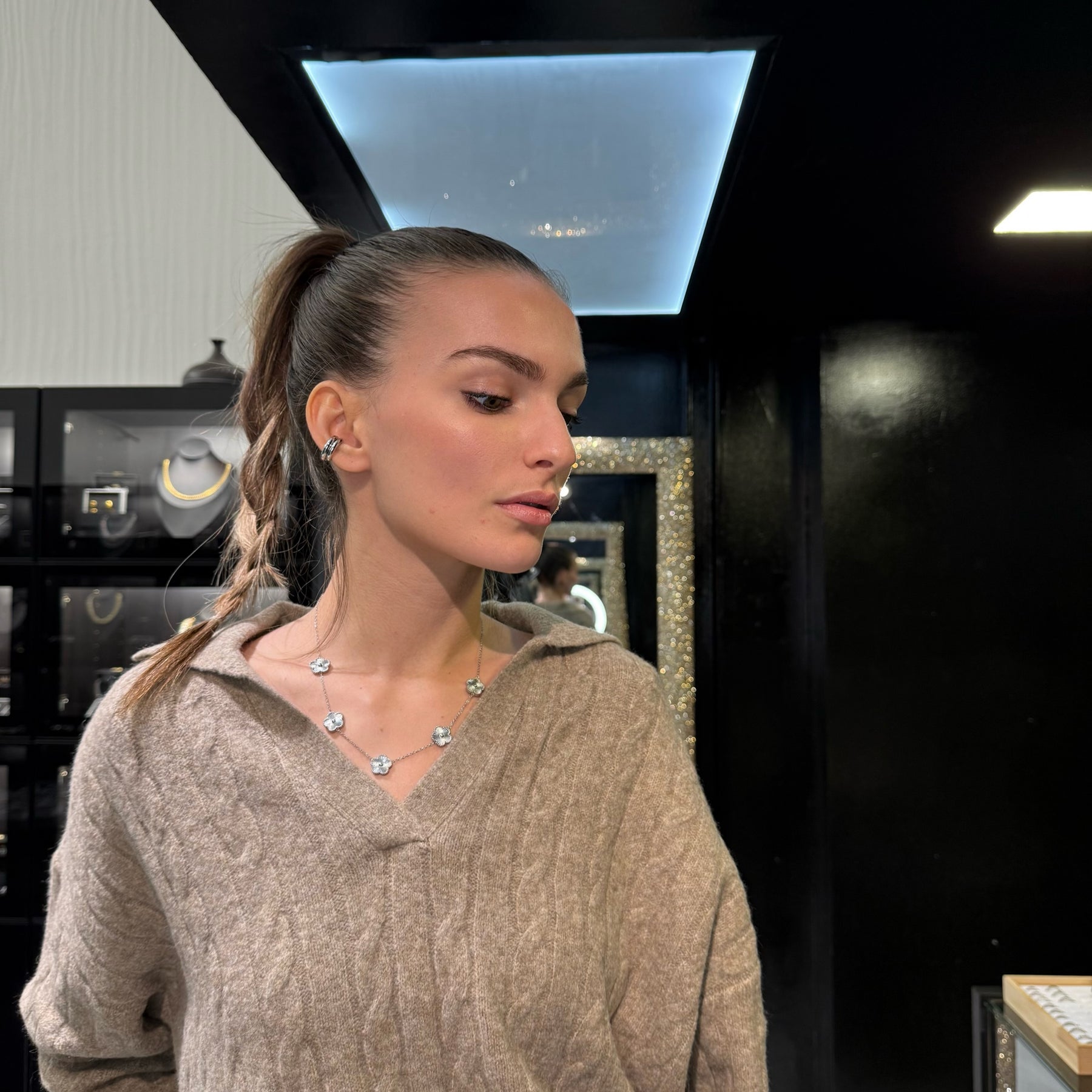 La Collana Silver Flower è il gioiello ideale per chi ama uno stile delicato ma ricercato. Composta da cinque raffinati fiori argentati, questa collana illumina il décolleté con un tocco di eleganza naturale e femminile.
