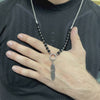 Collana in acciaio 316L dal design elegante e moderno, con dettagli neri e pendente a piuma.
